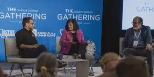 Also on the climate front—which highlighted the intersectional style of the Sanders Institute’s gathering—Congresswoman Jayapal joined with author and labor organizer Saket Soni as well as Jamie Court of the California-based Consumer Watchdog, an advocacy group, to discuss the linked issues of community resilience amid extreme weather disasters and soaring insurance costs that have arrived hand-in-hand with rising global temperatures.