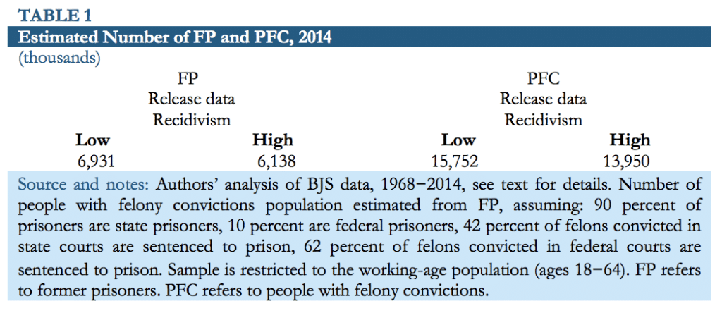 The final two columns of Table 1 show estimates of the number of people with felony convictions.