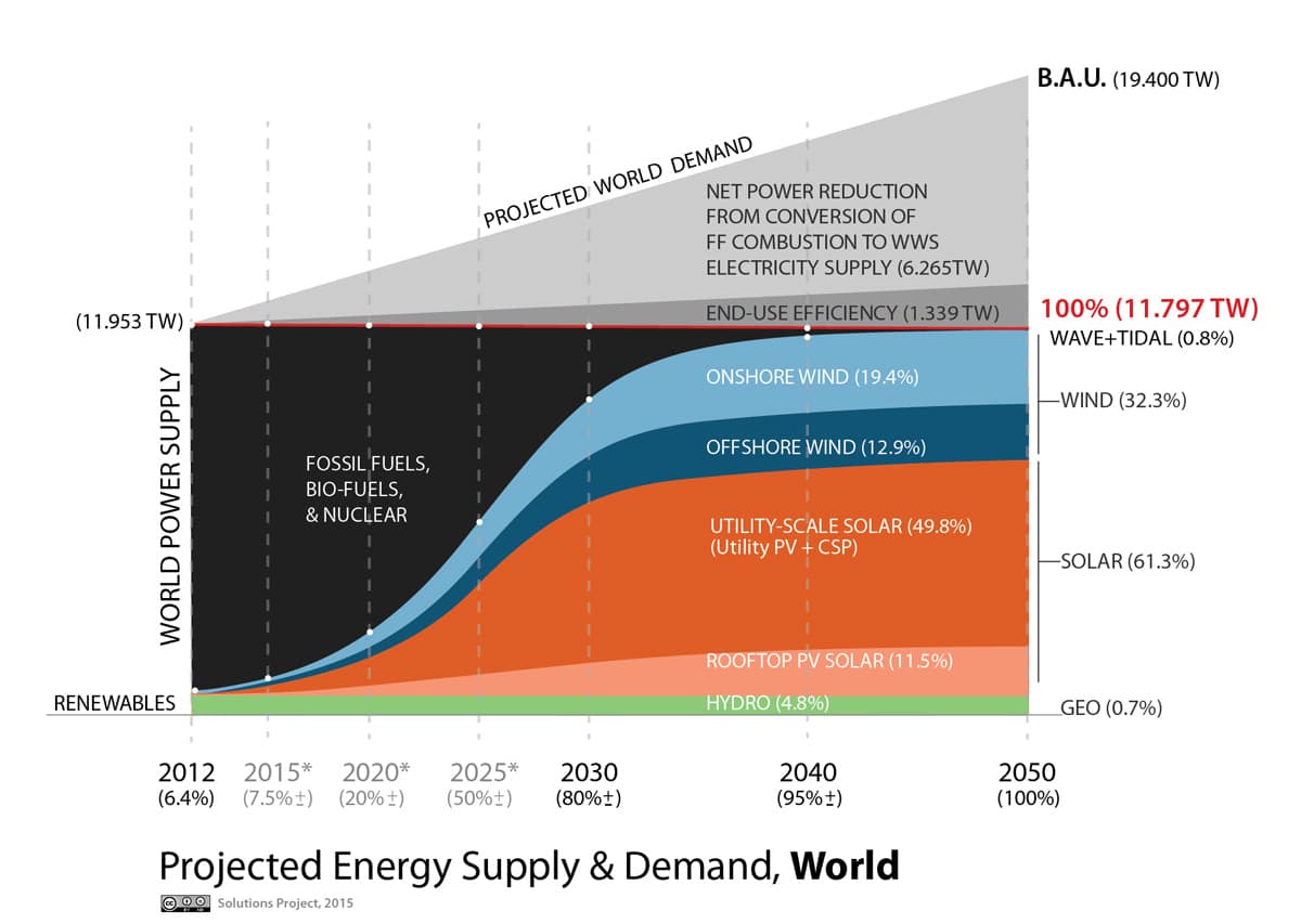 Environmental groups from the Climate Mobilization to Greenpeace to Food and Water Watch are backing the 100 percent target, differing mainly on how quickly we must achieve the transition, with answers ranging from one decade to around three. The right answer, given the state of the planet, is 25 years ago. The second best: as fast as is humanly possible. That means, at least in part, as fast as government can help make it happen. The market will make the transition naturally over time (free sunlight and wind is a hard proposition to beat), but time is the one thing we haven’t got, so subsidies, hard targets and money to help spread the revolution to the poorest parts of the world are all crucial.